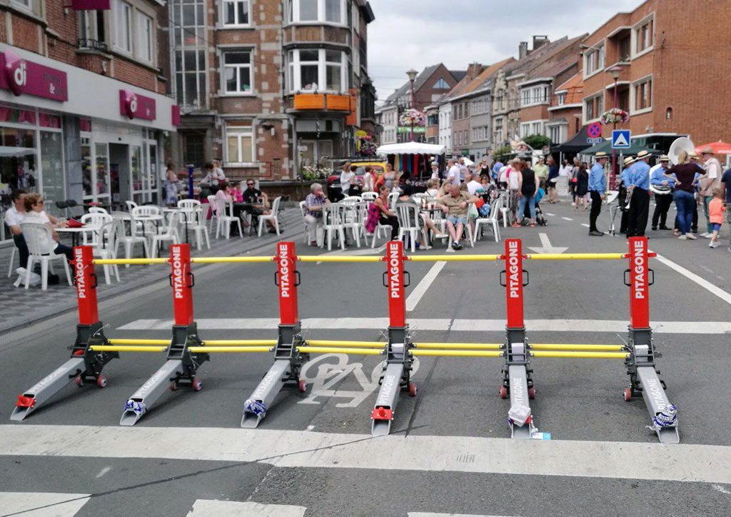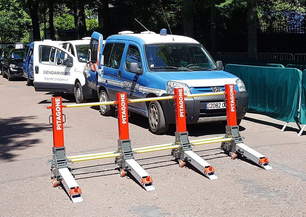 La barrière modulable mobile anti-attentat PITAGONE F-11 est unique en son genre. Elle a été conçue pour protéger les foules des véhicules bélier lors de rassemblements de personnes. Elle n’a pourtant l’air de rien à côté des blocs de béton traditionnels, mais grâce à ses redoutables pointes qui se plantent dans les bas de caisse, elle permet de stopper un camion de 7.5 tonnes lancé à 48 km/h.