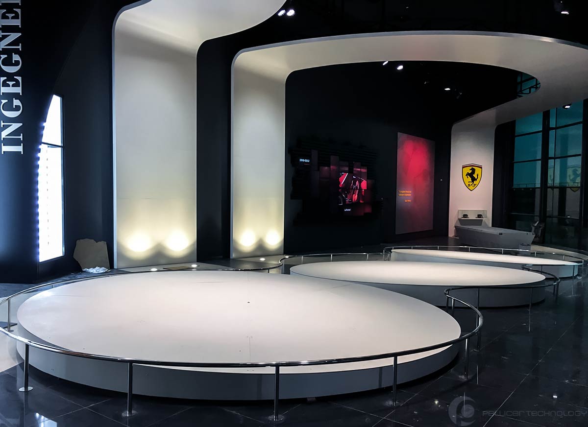 Les plateaux tournants pour showrooms permettent de mettre en valeur tous les aspects esthétiques des véhicules d’exposition. Il est possible de créer des espaces indépendants au moyen d’une plateforme centrale avec des couronnes concentriques dont les mesures atteindront les 30 mètres de diamètre et 40 tonnes de charge.